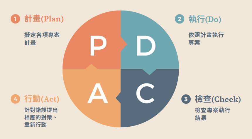 俗話說得好「萬丈高樓平地起」,一項專案能否順利進行有賴於PM事前的計畫(Plan)、執行(Do)專案品質、檢查(Check)專案進度;行動(Act)則有助於PM處理經驗累計、公司SOP改進,促進同事間彼此成長。